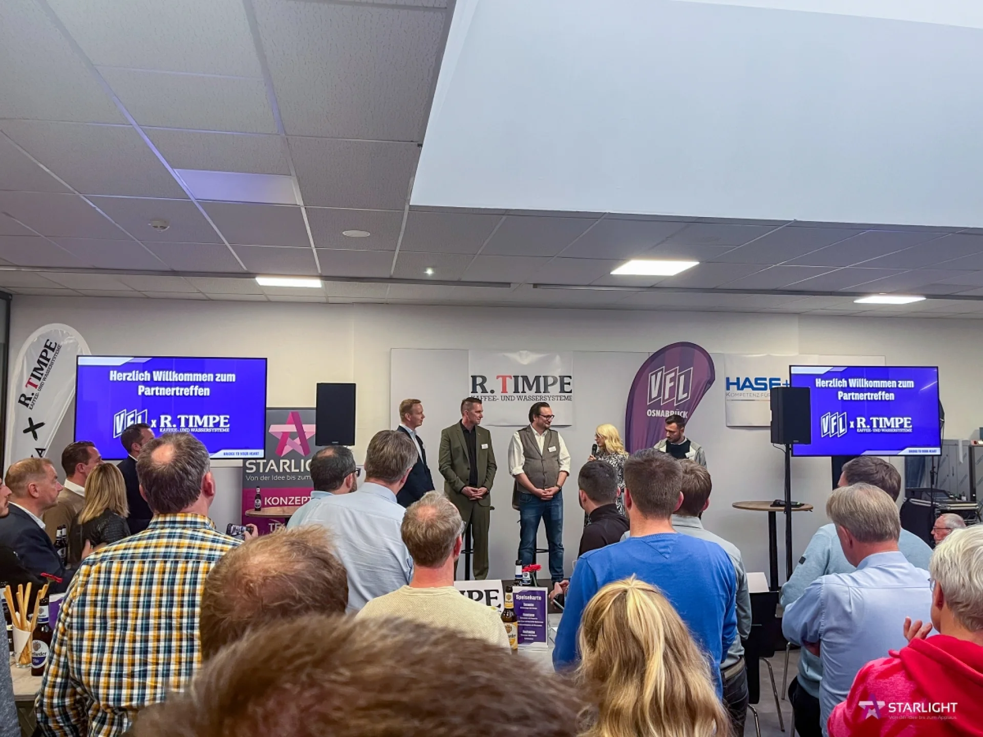 Anfang Oktober fand das erste VfL Partnertreffen der Saison 2024/2025 statt. Rund 190 Personen aus Klubführung, Mannschaft und Sponsorenkreis kamen im Showroom der R. Timpe GmbH zusammen. Neben den offiziellen Programmpunkten wie z.B. der Vorstellung des neuen Trainers Pit Reimers und verschiedenen Sport-Talk-Momenten nutzten die Anwesenden die Zeit für den gemeinsamen Austausch und die kulinarischen Live-Cooking-Highlights, die von Hase & Co bereitgestellt wurden. Wir waren nicht nur als Partner sondern auch als Dienstleister Teil der sportlichen Abendveranstaltung.