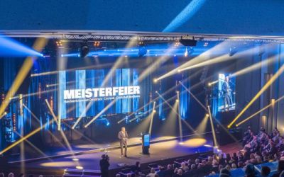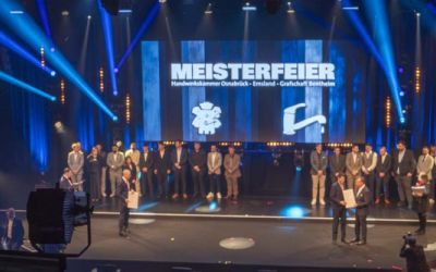 Bei der diesjährigen Meisterfeier der Handwerkskammer Osnabrück-Emsland-Grafschaft Bentheim wurden 326 Meisterinnen und Meister sowie 16 Betriebs- und 3 kaufmännische Fachwirtinnen und -wirte geehrt. Wie in den Vorjahren übernahmen wir zusammen mit dem Team der OsnabrückHalle die Rundumbetreuung des Gala-Events.