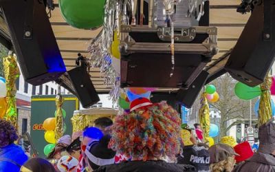 Unser Team war wie in den Vorjahren für den abt/hss Showtruck im Einsatz und stattete den Festwagen mit Licht-, Ton- und Moderationstechnik aus. Rund 60 Närrinnen und Narren feierten während des Umzuges auf dem LKW, der mit aufwändiger Dekoration und reichlich Konfetti in einen farbenfrohen Partytruck verwandelt wurde.