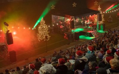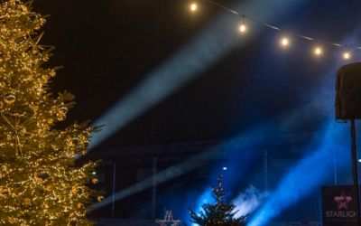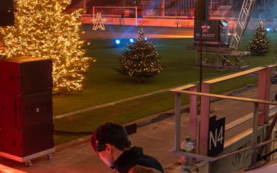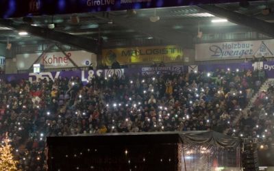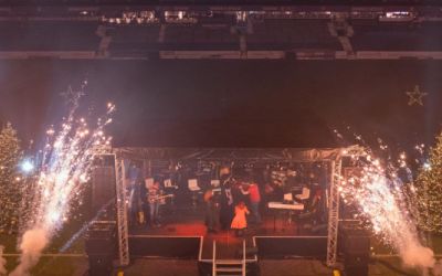 Für das Weihnachtssingen lieferten wir eine Traversenbühne von 8 x 7 Metern, umfassende Beschallung der Nordtribüne, Bandtechnik, Lichttechnik für den Bühnenbereich, stimmungsvolle Show- und Ambientebeleuchtung, Pyrotechnik sowie Heizstrahler. Darüber hinaus übernahmen wir die komplette technische Betreuung vor Ort.