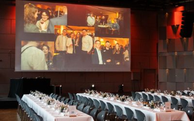 Auch diesmal setzten wir vor Ort ein individuell entwickeltes Bühnen- und Lichtkonzept um. Zudem erstellten wir detaillierte Bestuhlungs- und Aufbaupläne und übernahmen die entsprechende Realisierung. Mit einer stimmungsvollen Ambientebeleuchtung verwandelte sich die Lagerhalle Schritt für Schritt in eine eindrucksvolle Eventlocation.